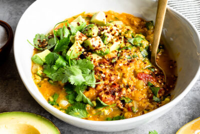 Protein-packed and full of flavor, this red lentil soup simmers into a rich, velvety texture for a cozy, no-fuss meal that’s perfect for weeknights or meal prep.