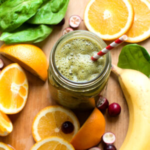 Fresh or frozen cranberries both work fine in this recipe. If you use frozen cranberries, then they will help chill your smoothie. And freezing doesn’t greatly affect the nutrient content of the fruit, though fresh will give you the most nutrients.