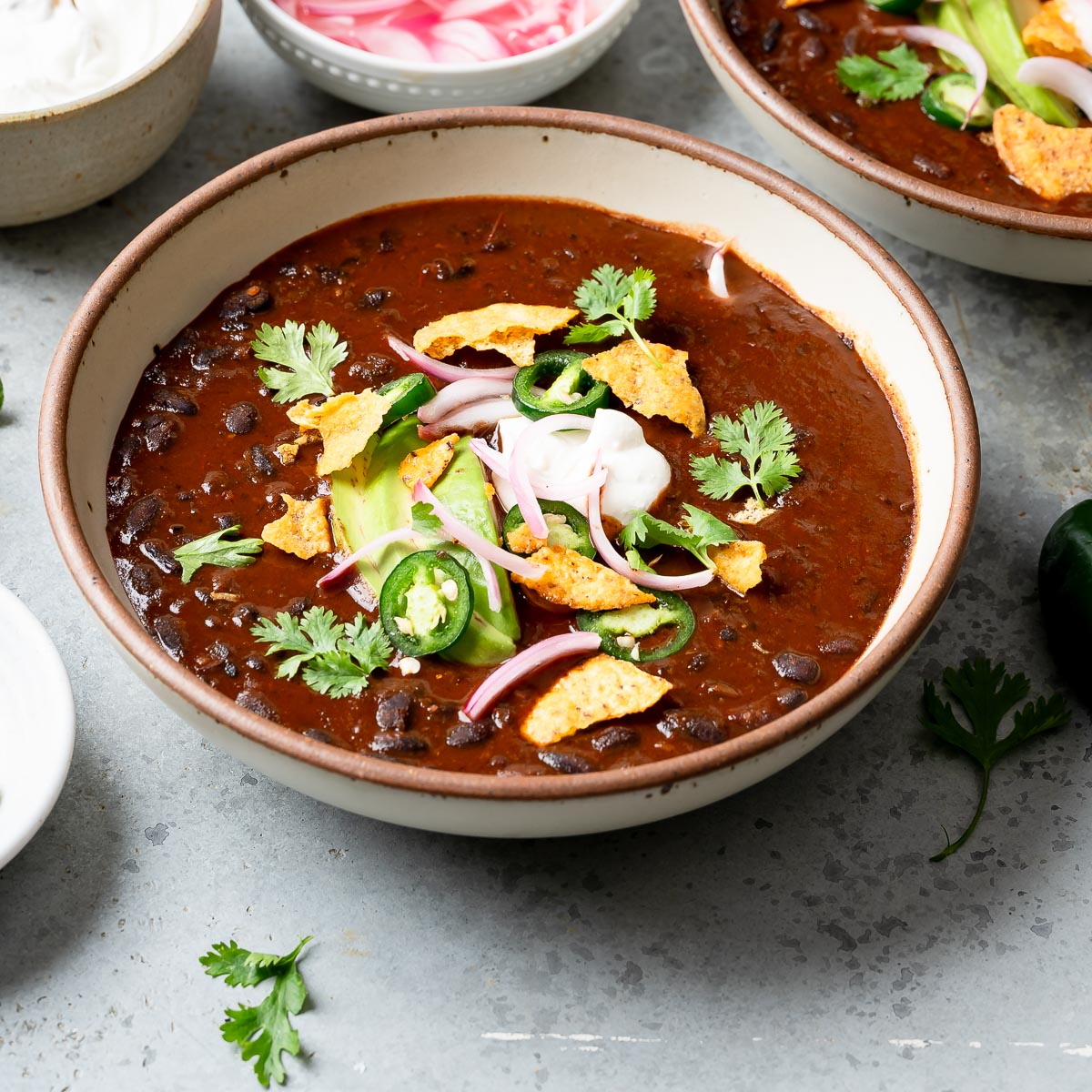 - Ladle into bowls and top with your favorite toppings.
