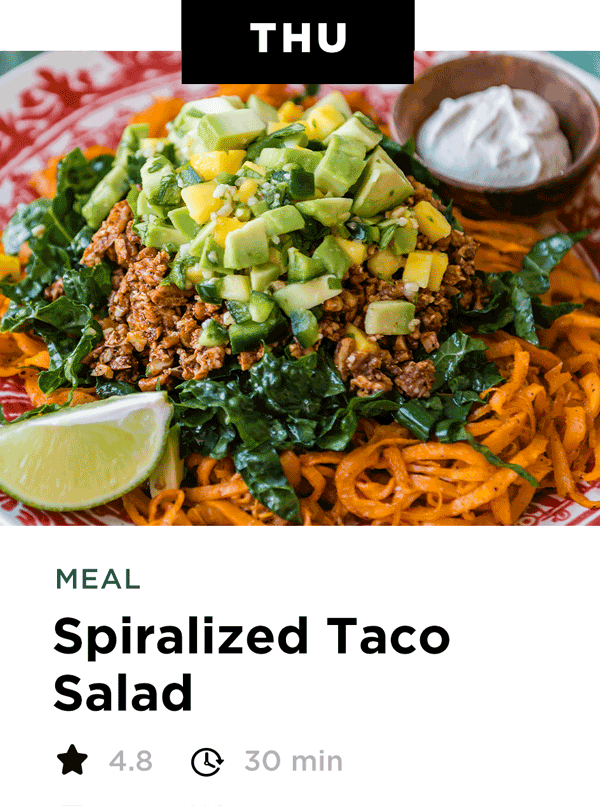 Each week, enjoy a pre-populated maintenance plan with smoothies, snacks, tacos, pizzas, salads, soups, veggie bowls, and desserts that’s satisfy your cravings, nourish your body and keep your health goals on track. You can swap recipes with the 700 recipes available inside the meal planner portal and get a custom shopping list and plan just for you.