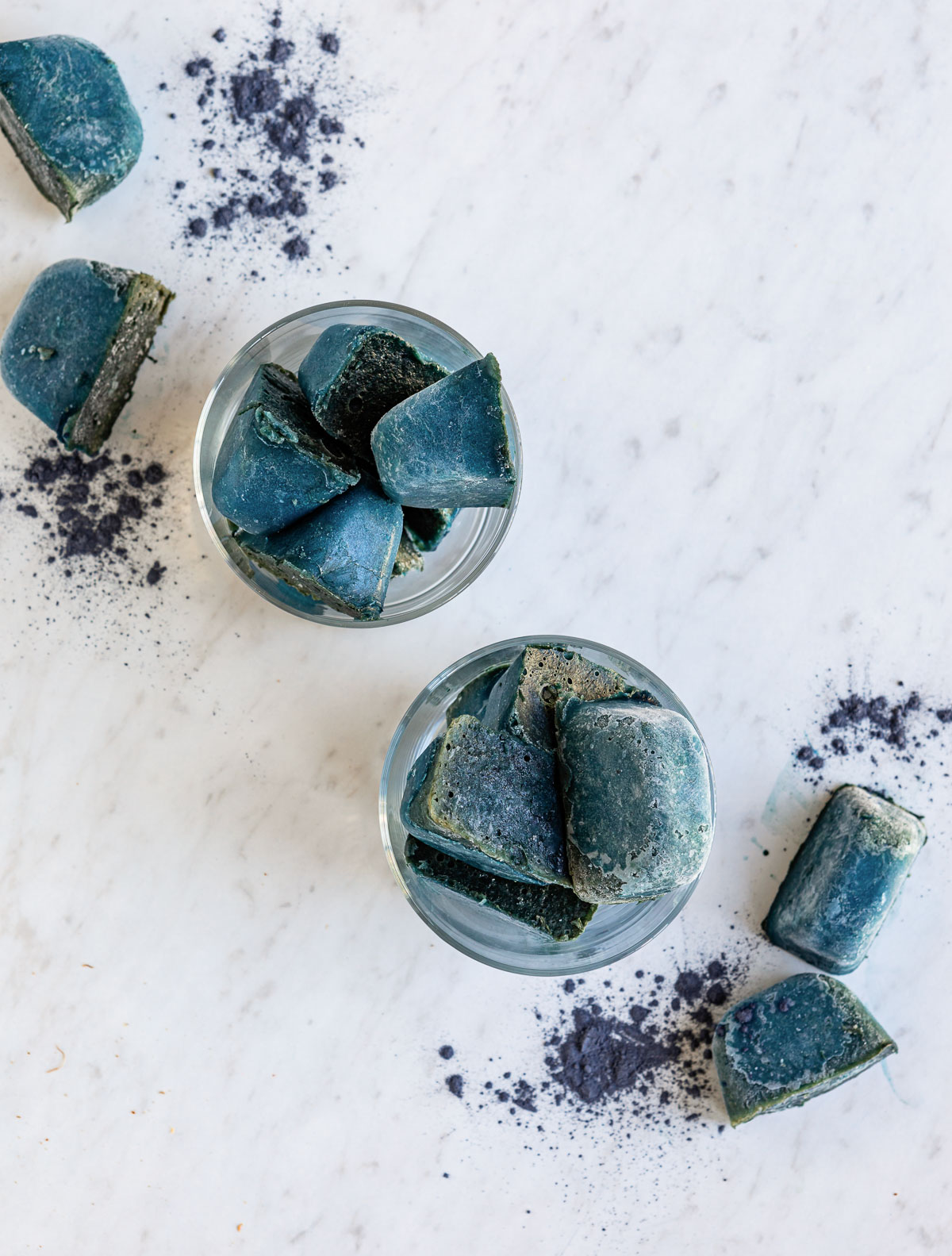 - The butterfly pea powder adds the blue color, without any other additions, the cubes will be light cream in color. Any superfood juice powder can be used to create other beautiful colors.