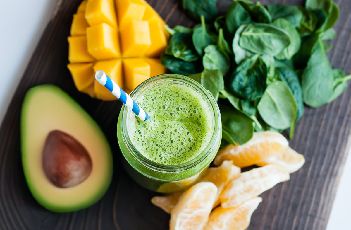 Not at all. Spinach has a mild flavor, and the sweet mango and citrus completely mask it, making this smoothie fruity and refreshing.
