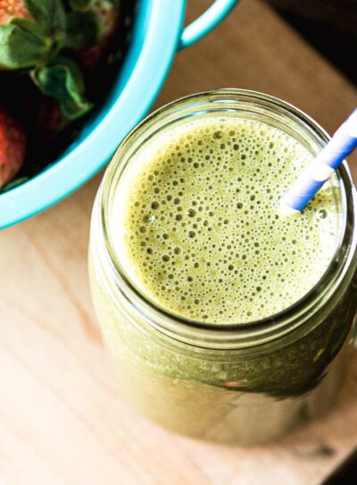 This smoothie is even easier to blend up than a traditional green smoothie, because you don’t need to blend the liquid and leafy greens first. Just toss all the ingredients into your blender and blend! A high-powered blender will break down the chia seeds as well as the strawberry seeds.